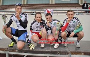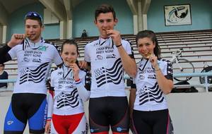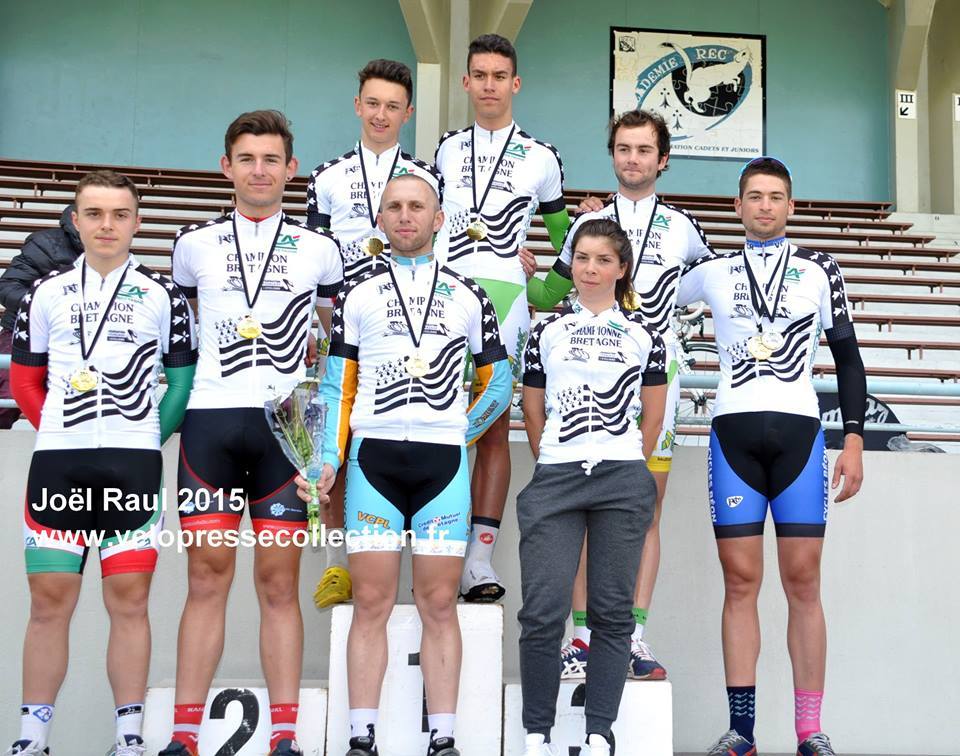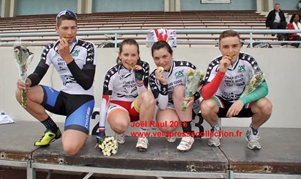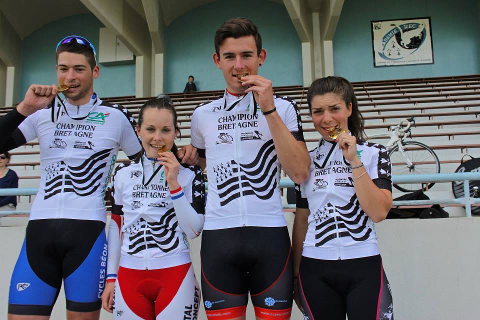 Les championnes et champions de Bretagne piste du sprint!!! Bravo ! belle journée! avec trois titres pour le VCR !! et trois podiums, 2 troisièmes places pour Nolwenn en vitesse et 500 mètres juniors, et une 2 ème place en keirin pour Thomas ! Championne de Bretagne du 500 mètres Margaux et Champion de Bretagne de la vitesse et du kilomètre Thomas!!!!!!! bravo une journée qui restera gravée dans nos cœurs merci à vous !!!!!!!!
