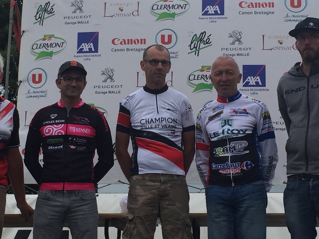 La météo a épargné la coupe de bretagne de vtt et le championnat d'ille et vilaine sur le circuit de liffré.Le parcours de 4.7 km en bon état le rendant roulant à défaut d'etre facile. Le dénivelé de 150m avec 3 difficultés majeures, une descente caillouteuse qui interdisait la prise de risque et surtout 2 montées terribles dont la ligne d'arrivée à franchir à tout les tours.(OF)
